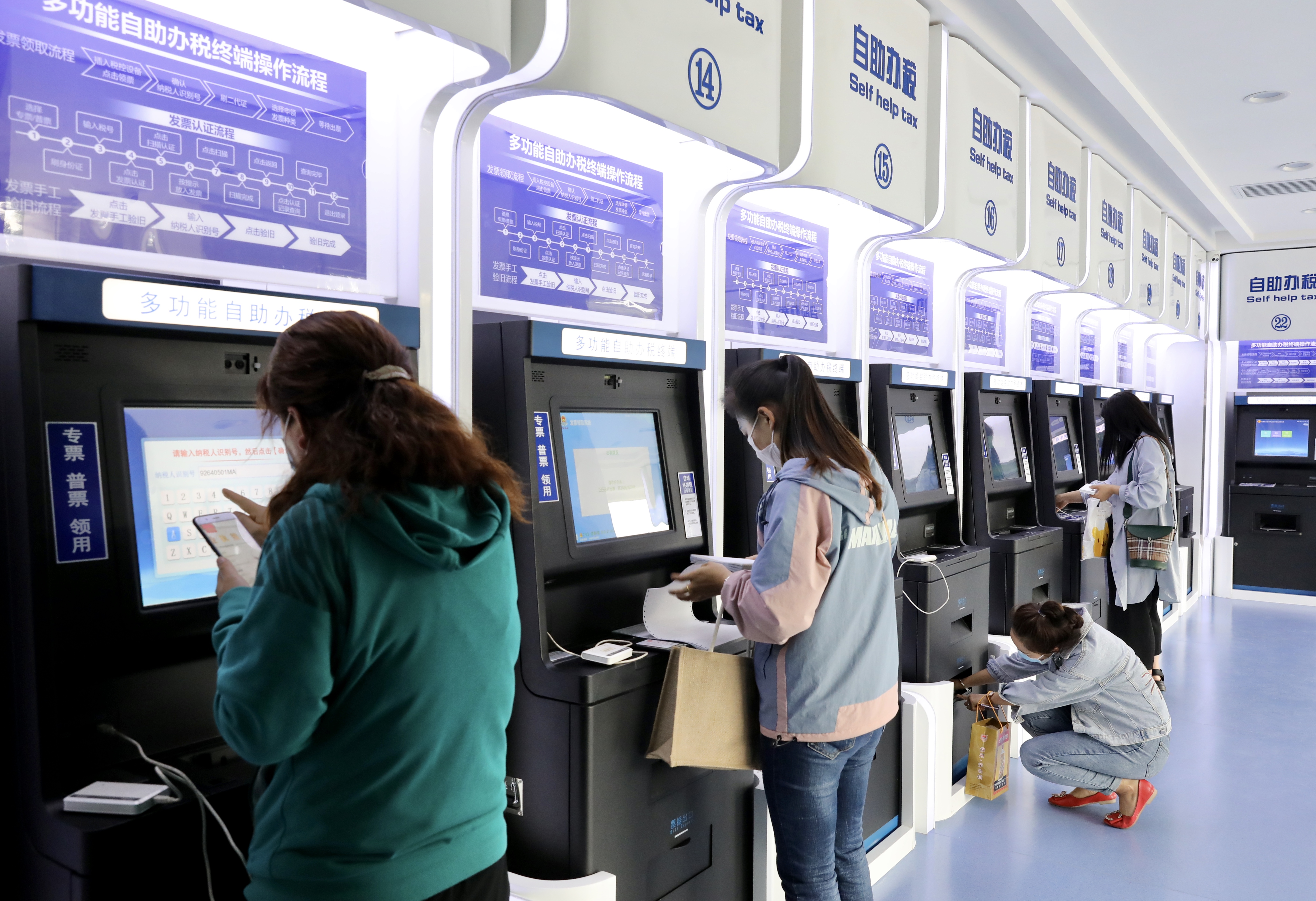 为进一步提升纳税服务水平、便利缴税费人,沙坡头区税务局积极打造24小时智慧自助办税厅,于6月1日起投入使用。该24小时智慧自助办税厅设置了政策公告宣传区、自助办税服务区、自助终端办税区等功能区,目前内设14台多功能自助办税终端、3台发票代开自助终端、4台社保费自助缴费机、1台定额发票自助领取设备和16台自助办税电脑,缴税费人可凭身份证刷卡进入,实现了增值税发票代开、验旧、领用、认证,以及社保费缴纳、防伪税控报税清卡等功能。同时可通过电子税务局、自助办税终端办理各类涉税业务,满足缴税费人自助办理涉税事项的需求,为缴税费人提供了更为自由、方便、快捷、高效的办税方式。